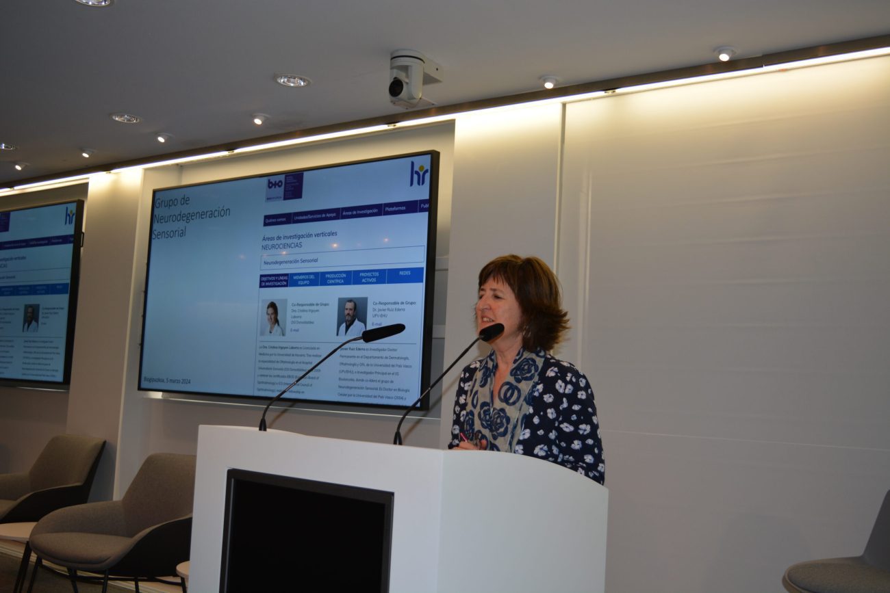 Ana Grijalba, en nombre de Begisare, señaló que junto a las y los investigadores hacen un equipo y que los tienen presentes, pensando que trabajan como hormiguitas. Itziar Vergara, directora científica del Instituto, ha saludado a las y los miembros de Begisare y ha retomado la idea del equipo, recordando que el trabajo de los investigadores no es posible si no es con la participación de los pacientes y que para el Instituto este tipo de actos son días de celebración. Javier Ruiz Ederra ha agradecido y ha destacado que el hecho de que Begisare sea una compañera de viaje es una gran suerte, que es hermoso tener a ellas y ellos a lado y que este tipo de aportaciones ayudan mucho al equipo de investigación.