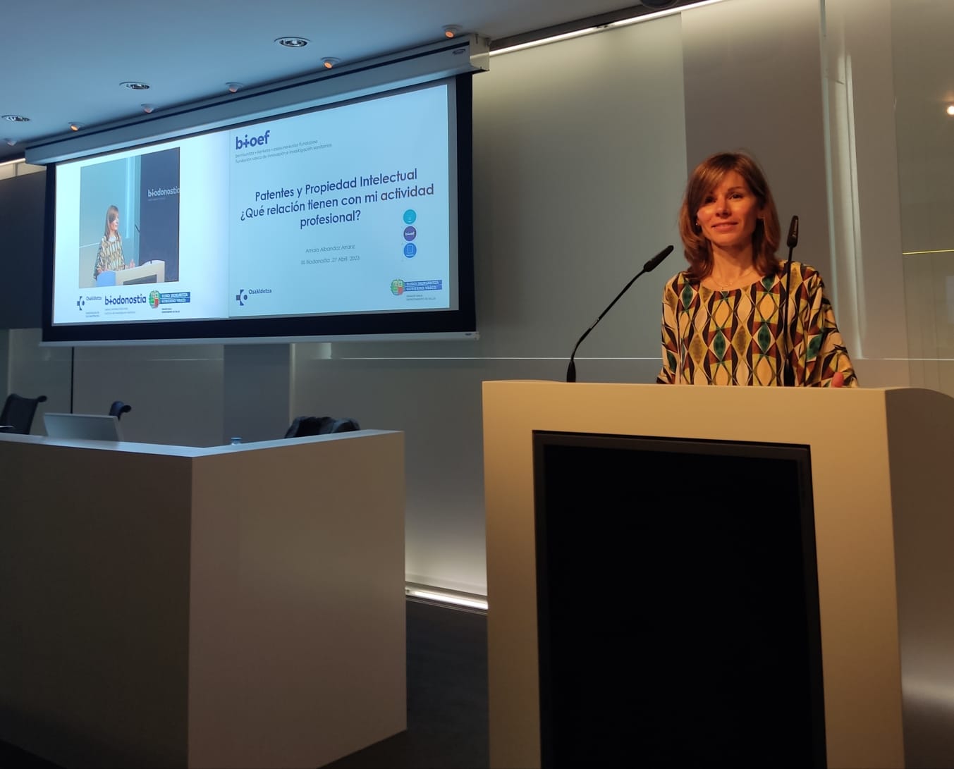 El 27 de abril ha tenido lugar en Biodonostia una interesante jornada en torno a los derechos de propiedad industrial e intelectual, contando para ello con la participación de Amaia Albandoz, técnico de trasferencia tecnológica de BIOEF, Fundación vasca de innovación e investigación sanitaria, quién en una charla muy interesante y dinámica ha explicado a las personas asistentes, entre otros aspectos, la importancia de la protección del conocimiento en el proceso de innovación y los diferentes modelos de protección de derechos de propiedad intelectual e industrial que existen.