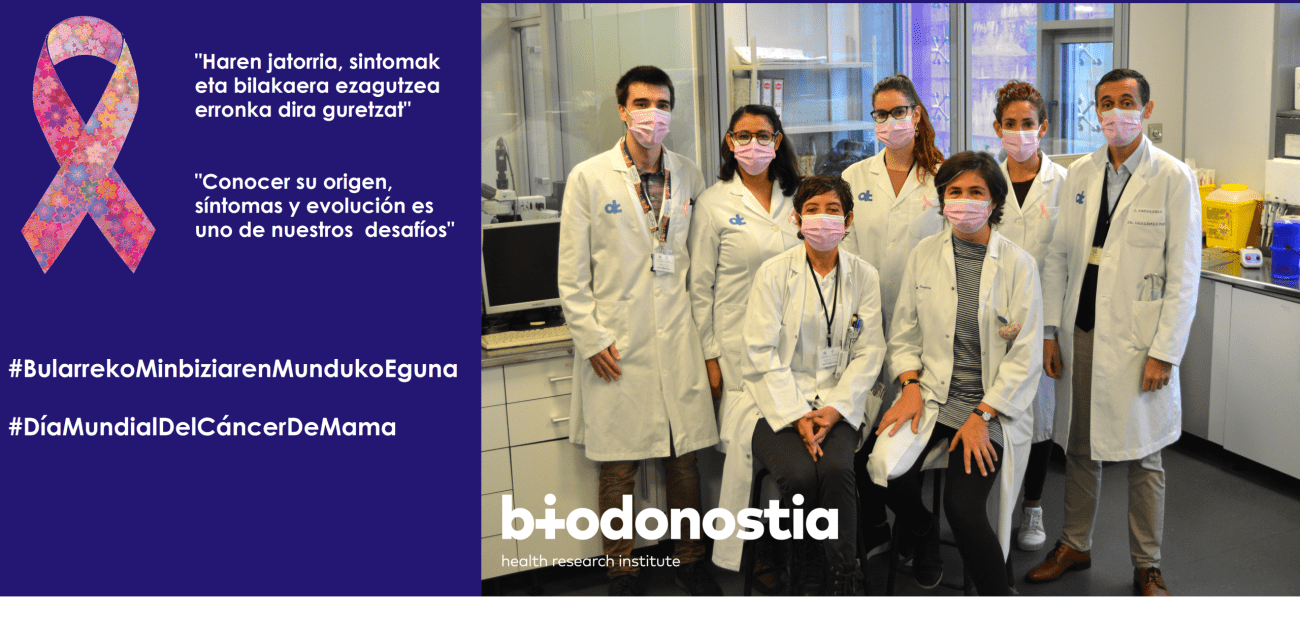 Conocer su origen, síntomas y evolución es uno de los desafíos que se abordan desde el IIS Biodonostia, desde donde queremos poner en valor, felicitar y agradecer a todos los actores que participan en torno a la investigación en Cáncer de Mama: pacientes, asociaciones de pacientes, equipos de investigadores así como las entidades, instituciones que patrocinan y gestionan investigaciones. Sin la participación de todos, los avances de las últimas décadas no hubieran sido posibles.