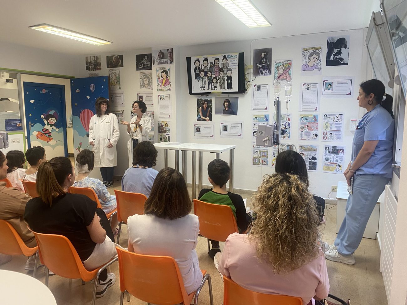 Por otro lado, junto con la Comisión de Igualdad de la OSI Donostialdea y el Servicio de Pediatría se organizó una actividad el 15 de febrero. En esta actividad participaron las comapañeras Paloma Petit y Laura Yndriago, que hablaron sobre mujeres investigadoras históricas y realizaron algunos experimentos.