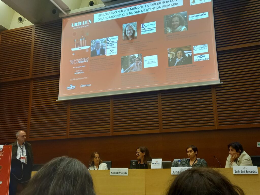 Kalliopi Vrotsouk eta Marian Gutiérrez Stampak, Aina Perelló eta María José Fernándezekin batera, “Explorando nuevos mundos: la experiencia con colaboradores que no son de AP” mahai-ingurua osatu dute, Iñaki Martín Lesendek moderatua. Bertan, hainbat arlotako profesionalen eta ikertzaileen eta Lehen Arretaren arteko lankidetza-esperientziak aurkeztu dira. Besteak beste, inplikatutako profesionalen eta ikertzaileen arteko komunikazioaren eta koordinazioaren garrantzia aztertu da, baita diziplina bakoitzaren erritmo eta beharretara egokitzeko beharra ere.