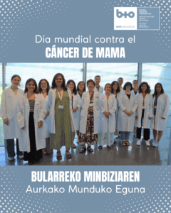 Urriaren 19an Bularreko Minbiziaren Munduko Eguna ospatzen da, eta egun horretan hainbat jarduera egiten dira hainbeste pertsonari eragiten dien minbizia ikusarazteko. Gure Institutuan, besteak beste, Ander Urruticoecheak eta María M. Caffarelek zuzendutako Bularreko minbizia taldeak ikertzen du minbizi hori.