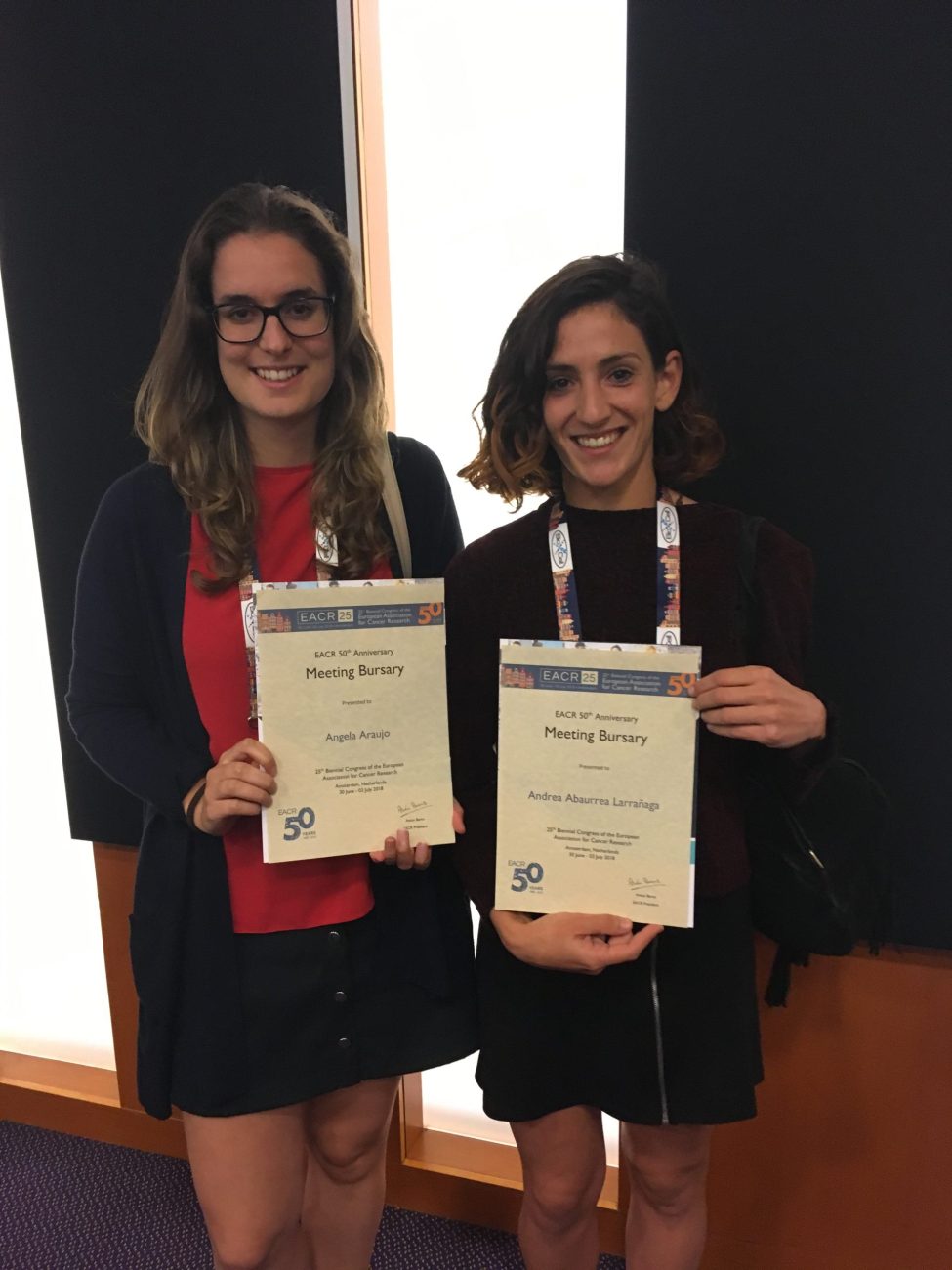 Biltzarraren barruan, Angela Araujo eta Andrea Abaurrea Biodonostia OIIko ikertzaileak saritu dituzte “European Association for Cancer Research” (EACR) elkartearen beketako batekin (EACR 50th Anniversary Bursaries). EACRek 50 beka eman dizkie ikertzaile gazteei, 200 eskabide baino gehiagoren artean.