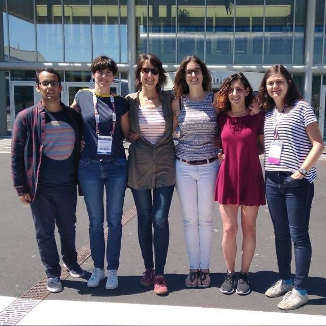Angela Araujo eta Andrea Abaurrea Onkologia Molekularreko taldeko doktoratu aurreko ikasleak dira, eta bularreko minbizian OSMR proteinak duen egitekoaren inguruko lana aurkeztu zuten. Biltzarrean parte hartu zuten, orobat, Onkologia arloko beste kide batzuek (Mikel Puga, Estefanía Carrasco García, Lorea Manterola eta María Muñoz Caffarel), euren ikerlanak aurkezteko.