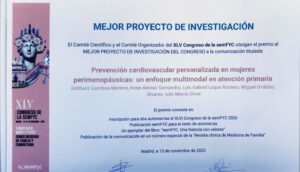 Gainera, Estibaliz Gamboak, erizaina eta Gipuzkoako LMAko eta ESIetako Ikerketa Unitateko kidea denak, ikerketa-proiektu onenaren saria lortu zuen ” Prevención cardiovascular personalizada en la mujer perimenopáusica: un enfoque multimodal en atención primaria” lanari esker.