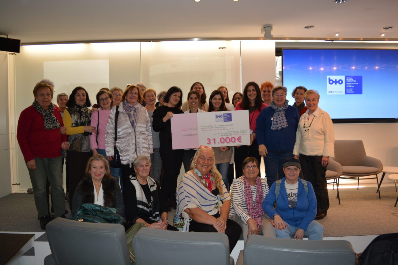 Abenduaren 13an Biogipuzkoan Katxalin elkarteko hainbat kideen bisita jaso genuen. Minbizia duten emakumeak laguntzeko Gipuzkoako elkarte honek 31.000€-ko txeke bat eman zuen eta aukera izan zuten Biogipuzkoako hainbat ikertzeileekin egoteko eta gure eraikina ezagutzeko. Emandako dirua Katxalinek antolatutako ibilaldian bildu zen.