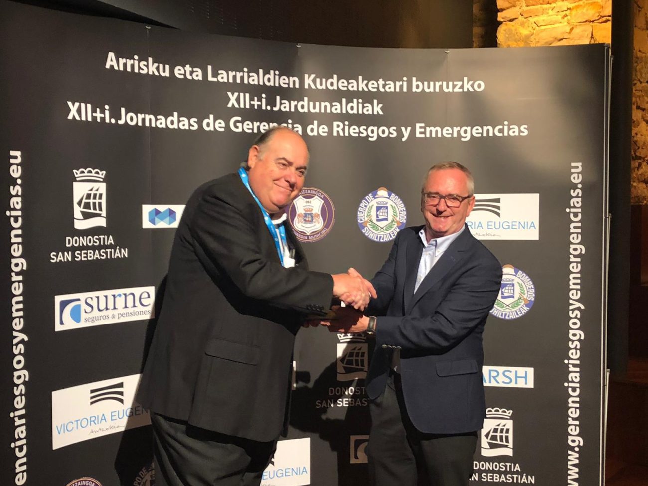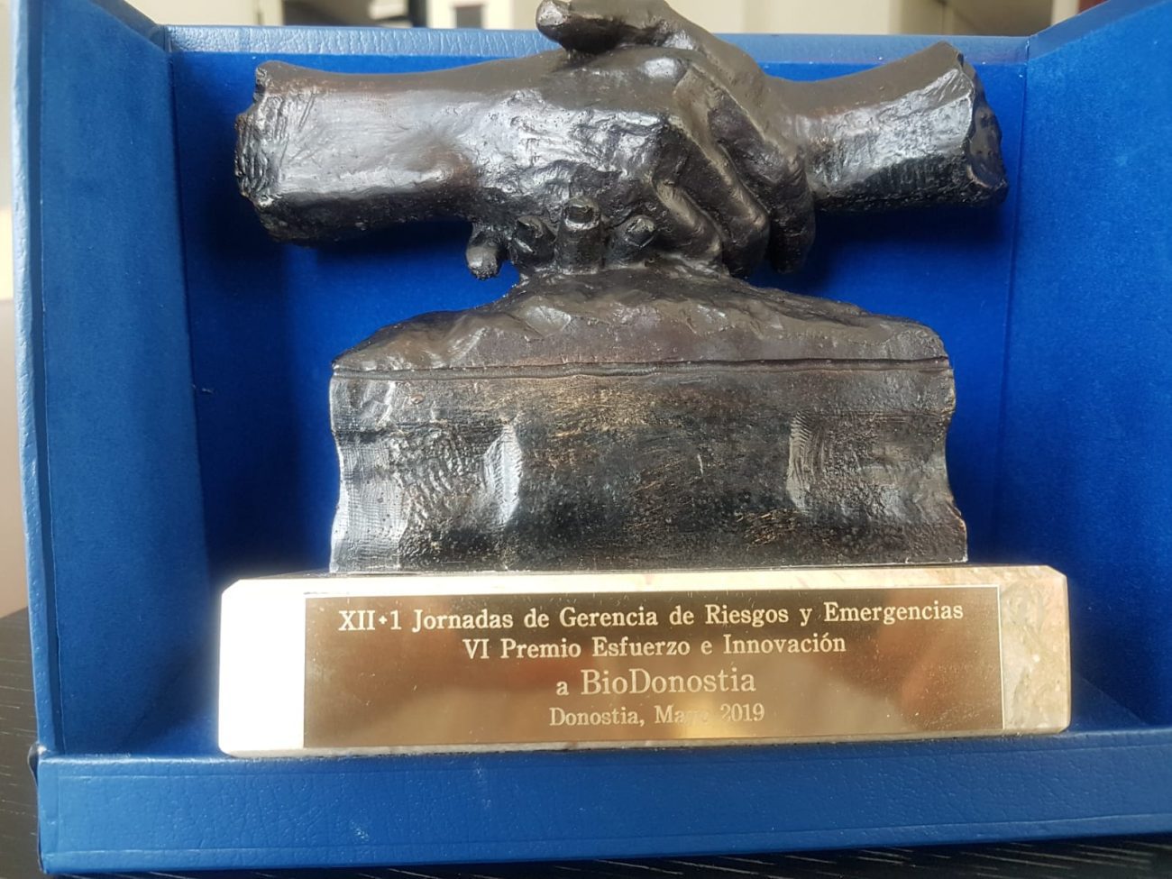 En el marco de estas jornadas que giran en torno a la gestión de riesgos en situaciones emergentes, desde hace 6 años se viene concediendo el Premio al Esfuerzo y la Innovación que este año ha recaído en el IIS Biodonostia. En palabras de la organización “el premio ha sido concedido por considerar fundamental el esfuerzo que viene realizando el Instituto, habiendo sido pionero en investigación en un momento en el que no había nadie en la CAPV a nivel público, convirtiéndose, a base del trabajo realizado en diversos campos y tesón en el centro de referencia en investigación biosanitaria de Gipuzkoa”.
