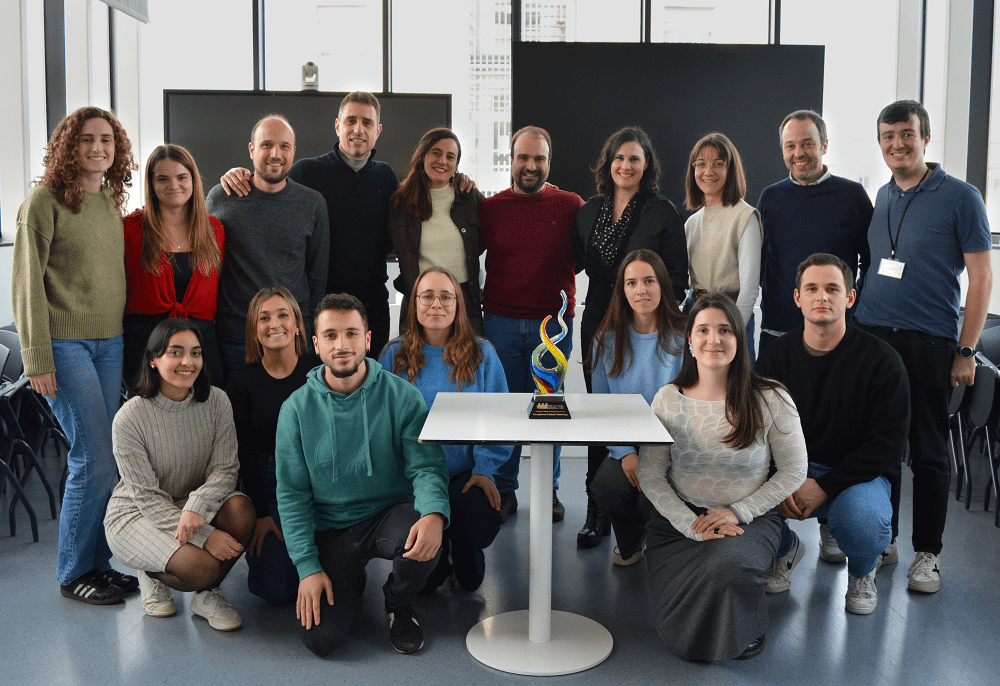 Miembros del Área de Enfermedades Hepáticas y Gastrointestinales del IIS Biogipuzkoa con el Premio. En la fila superior, cuarto desde la izquierda, el Dr. Bañales.