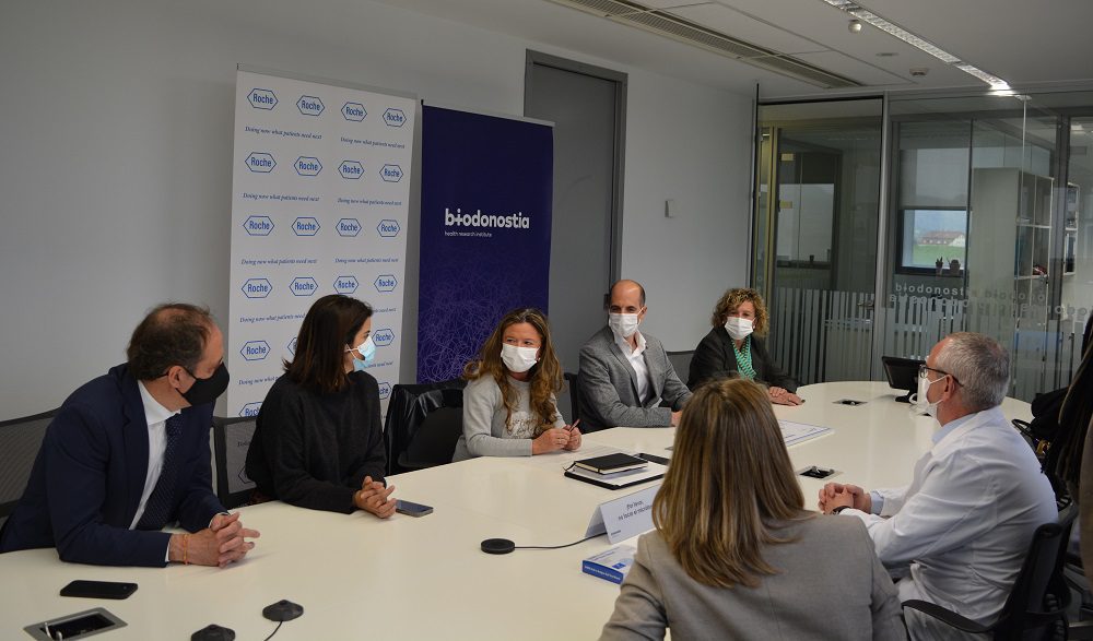 En el encuentro, además de la Consejera, también han estado presentes la Directora Médica de Roche Farma, Beatriz Pérez, el Director del Instituto Biodonostia Julio Arrizabalaga y la Directora de Investigación e Innovación Sanitarias, Marian Ibarrondo.