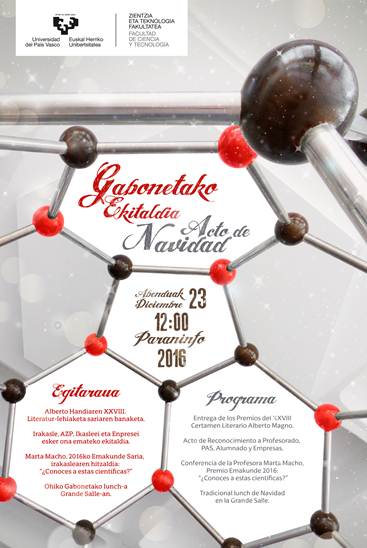 En el año 2016, (9 alumnos). Por este motivo y para agradecer el compromiso del instituto de investigación sanitaria con la formación de los futuros científicos tanto en el 2016 como en los años anteriores, la UPV-EHU ha entregado a Biodonostia una placa conmemorativa en su celebración anual del Acto de Navidad que tuvo lugar el 23 de diciembre de 2016 en el Paraninfo de la Facultad de Ciencia y Tecnología de Leioa.