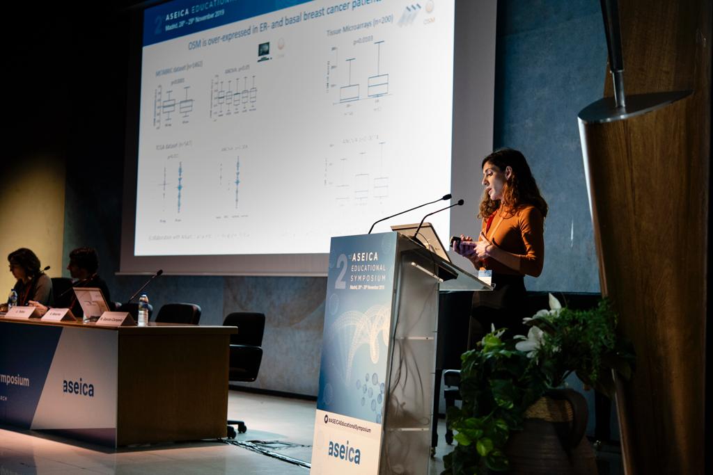 En el marco de este Simposio, el abstract presentado por la investigadora del IIS Biodonostia Angela M. Araujo “Activation of Cancer Associated Fibroblasts by Onconstatin M contributes to breast cancer progression” fue seleccionado y galardonado con el premio a la mejor comunicación oral. Angela Araujo está elaborando su proyecto de tesis en el Grupo de Oncología Molecular, siendo co-dirigida por los doctores María Caffarel y Charles Lawrie. Su proyecto está enfocado en estudiar el papel de las citoquinas pro-inflamatorias en la progresión del cáncer de mama. Recientemente, han descubierto que estas citoquinas pueden ser importantes en la comunicación del tumor con el sistema inmune, proceso clave para la progresión tumoral.